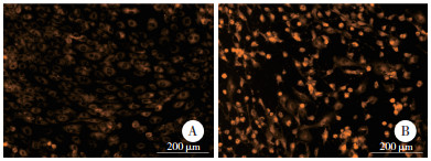 | A,control group;B,DIC model group. 图 1 Fe2+荧光染色 Fig.1 Fe2+ fluorescence staining |