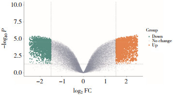| 图 2 DIC的差异表达基因的火山图 Fig.2 Volcanic map of differentially expressed genes in DIC |