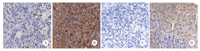 | A,low expression in cervical cancer tissues;B,high expression in cervical cancer tissues;C,low expression in adjacent tissues;D,high expression in adjacent tissues. 图 3 宫颈癌组织与癌旁组织中CXCL8的表达 IHC ×40 Fig.3 CXCL8 expression in cervical cancer and adjacent tissues IHC ×40 |