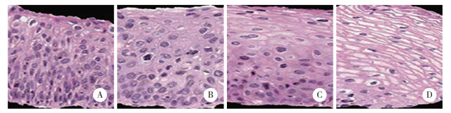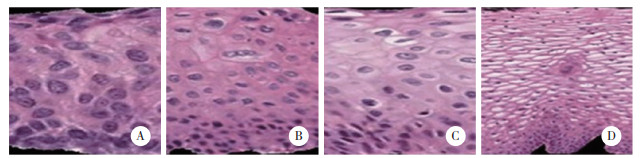 1 材料与方法 1.1 一般资料选取2022年6月至2024年1月于河南科技大学第一附属医院行妇科手术的患者180例,并根据病理检查结果进行分组。其中宫颈癌组50例、高级别病变组50例、低级别病变组40例,无宫颈病变(对照)组40例。宫颈癌组患者年龄30~58岁,平均(45.23±8.62)岁;高级别病变组患者年龄30~59岁,平均(45.64±8.57)岁;低级别病变组患者年龄29~58岁,平均(45.37±8.55)岁;对照组患者年龄30~59岁,平均(45.54±8.28)岁。纳入标准:(1)病理检查确诊为宫颈癌、高级别病变、低级别病变[7];(2)对照组通过宫颈薄层液基细胞学检查未见癌细胞或非典型鳞状细胞;(3)均签署知情同意书。排除标准:(1)合并其他恶性肿瘤;(2)宫颈既往接受过物理治疗或手术治疗;(3)术前曾接受过化疗或放疗;(4)合并其他脏器衰竭或功能不全。本研究获得河南科技大学第一附属医院伦理委员会批准。