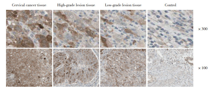 1.2 方法 1.2.1 标本采集与保存各组患者手术过程中取宫颈癌组织、高级别病变、低级别病变、正常宫颈组织标本,一部分标本使用生理盐水冲洗后,立刻放置-80 ℃冰箱冻存,另一部分进行石蜡包埋,用于免疫组织化学检测。