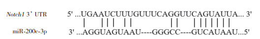 | 图 6 TargetScan软件预测的miR-200c-3p与Notch1的结合序列 Fig.6 Binding sequence between miR-200c-3p and Notch1 predicted by TargetScan software |
