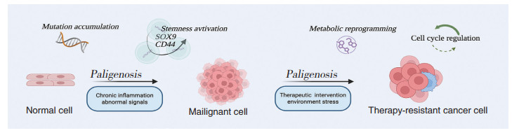 | 图 2 肿瘤细胞逆生及耐药发展过程示意图 Fig.2 Schematic diagram of tumor cell paligenosis and drug resistance development process |