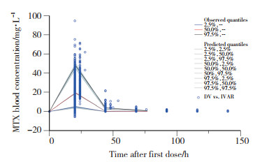 1.3 PPK模型建立采用非线性混合效应模型[14]描述MTX药动学特征,并进行模型评价及验证。通过Phoenix软件(8.1版本)的NLME程序实现上述过程。
