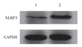 | 1, control group; 2, model group. 图 1 胃溃疡小鼠胃黏膜组织中NLRP3蛋白表达 Fig.1 Expression of NLRP3 protein in gastric mucosa of mice with gastric ulcers |