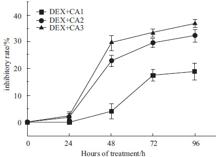 | Fig 2 Inhibitory effect of CA on osteoclasts proliferation treated with DEX CA1:11.6 μg·L-1;CA2:23.2 μg·L-1;CA3:46.4 μg·L-1 |