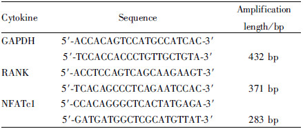 1.2.5 引物的设计与合成GAPDH、RANK、NFATc1引物由上海博尚生物技术有限公司合成。引物序列见Tab1。