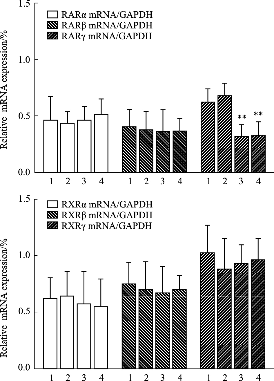Effect of ATPR on the mRNA expression of retinoic acid receptors (RARs) and Retinoid X acid receptor (RXRs) in MDA-MB-231 cells (n=3, ± s)