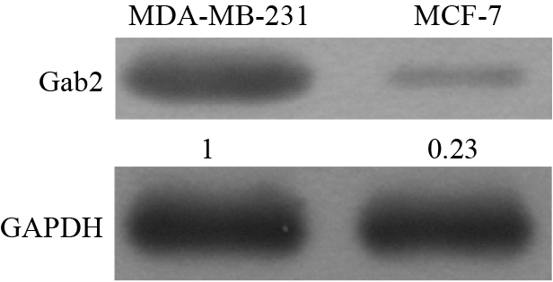 | Fig.2 Expression of Gab2 in MDA-MB-231 cells and MCF-7 cells (Values represent gray value) |