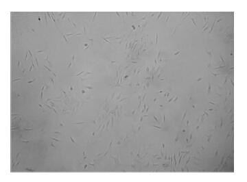 | Fig 2 Phase-contrast micrograph of mesenchymal stem cells cultured with PDGF-BB for 7 days The cells showed spindle shape after PDGF-BB stimulation |