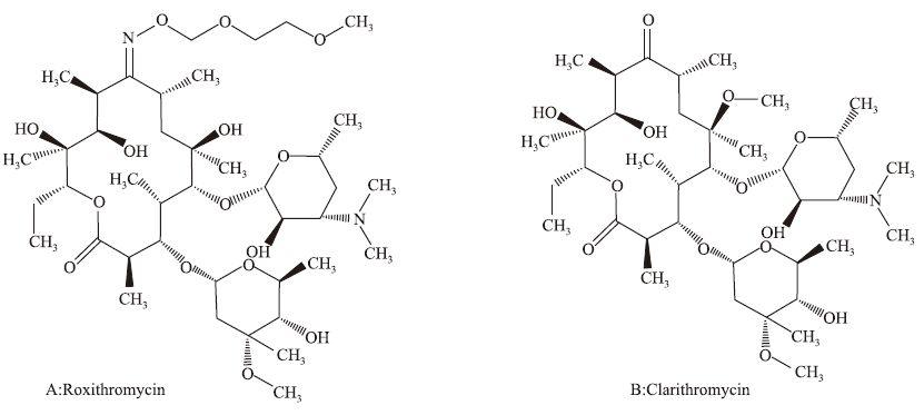| Fig 1 Chemical structures of roxithromycin (A) and clarithromycin (B) |