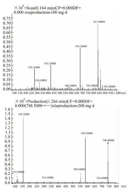 | Fig 2 Product ions of roxithromycin and clarithromycin (IS) |