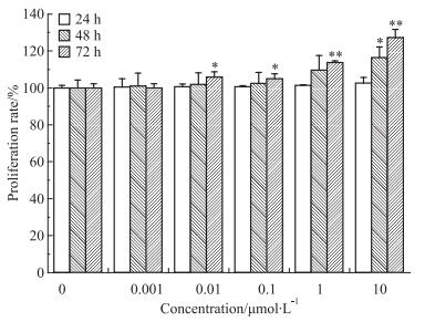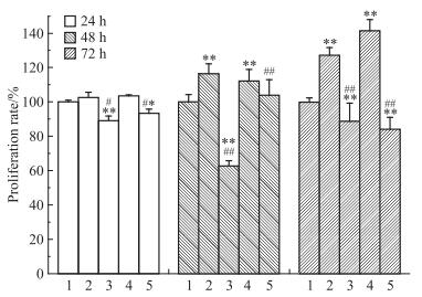 增殖率(proliferation rate,PR)/%=(实验组A值/溶剂对照组A值)×100%。