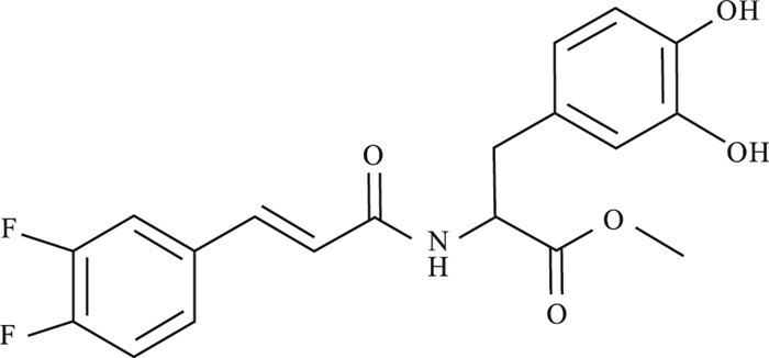 恶性肿瘤作为仅次于心血管疾病的第二大“隐形杀手”,现今已有取而代之的趋势。据估计,到2025年,全球新增肿瘤数量将达到2 000万,严重威胁人类健康和社会经济的可持续发展[1]。有数据显示,以胃癌、肝癌、食道癌为主的消化道肿瘤依然是位居中国前五的恶性肿瘤, 因此,胃癌仍是发病率和死亡率较高的恶性肿瘤之一,其5年生存率低于30%[2],寻求新的途径来治疗胃癌尤为重要。迷迭香酸(rosmarinic acid,RA)是一种天然的水溶性苯酚羧酸,化学成分主要有酚类、萜类、黄酮类等。RA的药理作用也非常广泛,包括抗癌、抗菌、抗抑郁、保护神经等[3]。房祥杰等[4]报道,RA可通过MAPK/ERK信号通路,抑制结肠癌LS174T细胞增殖,诱导细胞凋亡。杨沛霖[5]报道,迷迭香酸类似物RA-C1能剂量依赖性地抑制人鼻咽癌CNE-1细胞增殖,并诱导其凋亡。从RA多种生物学效应的理论基础出发,本研究小组合成了十几个迷迭香酸类似物(rosmarinic acid analogue,RAA)。通过前期的药效学研究发现,迷迭香酸类似物-11(rosmarinic acid analogue-11,RAA-11)在抗肿瘤方面有明显优势,其化学结构式见Fig 1。因此,本课题进一步用RAA-11作用于人胃癌MGC-803细胞,基于表皮生长因子受体(epidermal growth factor receptor,EGFR)-JNK通路,探讨其对细胞增殖、迁移及凋亡的影响,为进一步开发RAA-11提供基础。