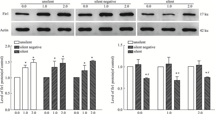 | Fig 2 Expression of Fis1 protein in SH-SY5Y cells (x±s, n=3)) *P < 0.05 vs control; #P < 0.05 vs silent negative group |