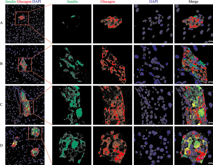 1 材料与方法 1.1 材料 1.1.1 实验动物SPF级雄性C57BL/6J小鼠(7周)购自江苏集萃药康生物科技有限公司。用于α细胞谱系示踪的GCGicre小鼠从caygen(B6; 129S-Gcgtm1.1(icre)Gkg/J(The Jackson laboratory stock #030663)购买,并与从上海南方模式生物科技股份有限公司购买的Rosa26tdTomato(B6;Cg-Gt (ROSA) 26Sortm9 (CAG-tdTomato) Hze/J (The Jackson laboratorystock #007909)杂交[15]。实验小鼠均饲养于华南理工大学大学城校区SPF级实验动物中心,使用许可证号:SYXK(粤)2017-0178。研究方案获得华南理工大学动物实验伦理委员会批准。