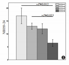 | 图 1 血管内治疗24 h的美国国立卫生研究院卒中量表(NIHSS-24)与侧支循环评分(CCS)相关性 |