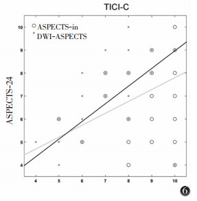 | 图 6 ASPECTS-24与ASPECTS-in(浅灰线)和DWI-ASPECTS(深灰线)之间的相关性 |
