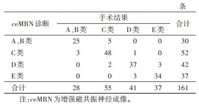 1.4 统计学方法采用SPSS 17.0统计软件分析数据。ceMRN诊断结果与手术结果比较行