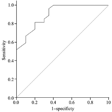 | 图 3 甲状腺结节碘值ROC曲线 Figure 3 The receiver operating characteristic (ROC) curves of iodine concentration of thyroid nodules |