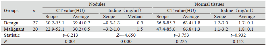 - 双源CT平扫碘值鉴别甲状腺良恶性结节的临床应用