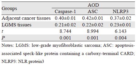本研究预收集LGMS瘤组织和瘤旁组织,检测 NLRP3炎性体3个蛋白的表达水平,及与肌纤维母 细胞肉瘤发生、发展的关系,为其发病机制研究 奠定基础,为LGMS的预防和治疗提供线索。
