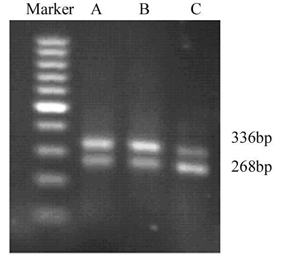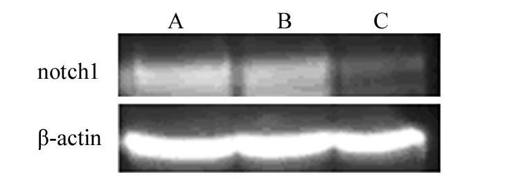 | 图 2 RT-PCR检测siRNA对notch1 mRNA表达的影响 Fig. 2 Effect of siRNA on notch1 mRNA expression detected by RT-PCR |