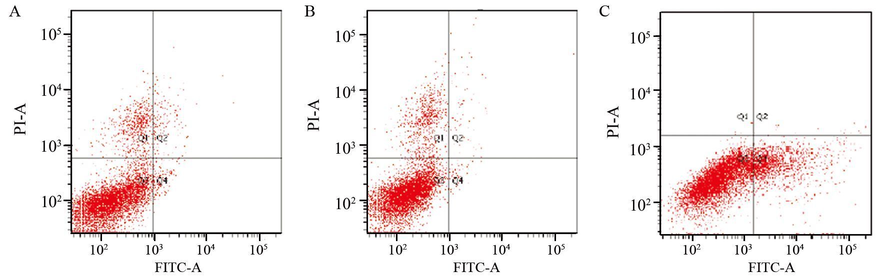 | 图 3 AnnexinⅤ-FITC/PI法检测siRNA对细胞凋亡率的影响 Fig. 3 Effect of siRNA on cells apoptosis detected by Annexin Ⅴ-FITC/PI |