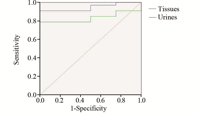 | 图 4 TCF21检测肾癌组织和尿液样本的受试者工作特征曲线 Figure 4 Receiver operating characteristic (ROC) curves of TCF21 detecting RCC tissues and urine specimens |