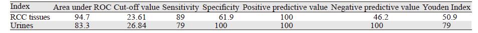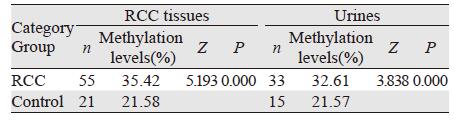 2.5 肾癌组织与尿液样本中TCF21甲基化水平诊断肾癌的价值