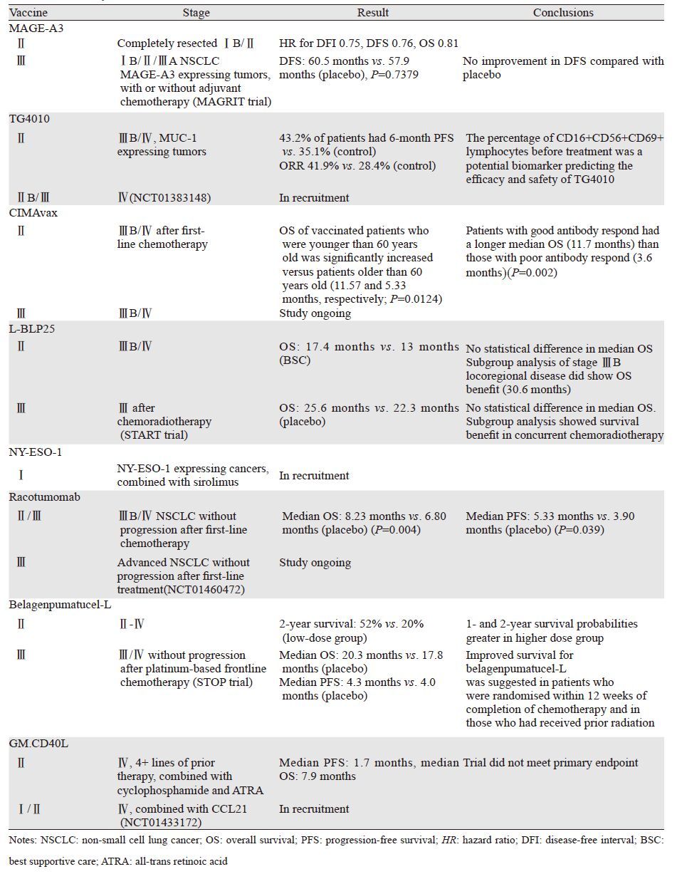 - NSCLC的疫苗治疗研究进展