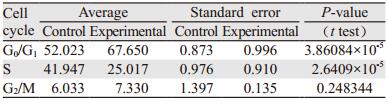 1.2.4 FACS法进行细胞周期检测待各实验组细胞生长至覆盖率约为80%时,完全培养液终止培养,收集细胞,PBS洗涤,PI染色,FACS分析。