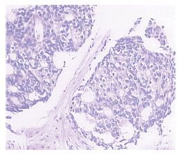 | 图 1 前列腺腺癌的病理形态 (IHC×100) Figure 1 Pathological morphology of prostatic adenocarcinoma (IHC×100) |