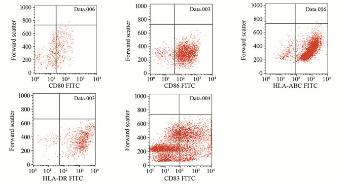 1.2 主要试剂RPMI 1640培养液、胎牛血清(fetal bovine serum, FBS)购自美国HyClone公司;胶原酶Ⅳ购自美国Sigma公司;淋巴细胞分离液购自北京索来宝公司;鼠抗人phycoerythrin(PE)-CD133/1(AC133)及其相对应的同型对照购自德国Miltenyi Biotec公司;鼠抗人FITC标记人类白细胞抗原(human leukocyte antigen, HLA)-DR、HLA-ABC、CD86、CD80、CD83及其相对应的同型对照购自美国BD公司。重组人白介素-2(recombinant human interleukin-2, rhIL-2)、rhIL-4、rhGM-CSF、重组人肿瘤坏死因子(recombinant human tumor necrosis factor-α,rhTNF-α)均购自美国R & D公司;白介素-12(interleukin-12, IL-12(P70) Platinum ELISA购自美国Affymetrix eBioscience公司。