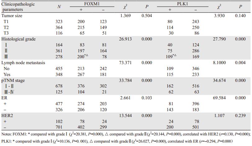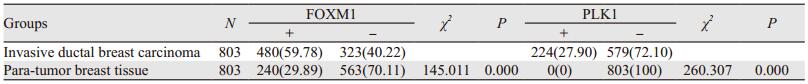 - 乳腺癌组织中FOXM1和PLK1的表达及意义