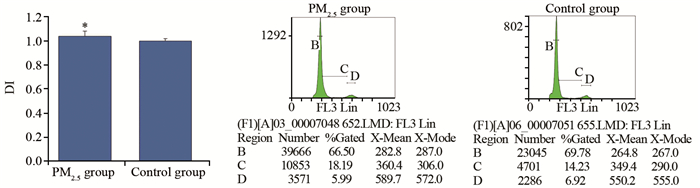 1.2 主要试剂及仪器PM2.5采集器及全身暴露染毒系统(北京慧荣和科技有限公司);FC500型流式细胞仪(美国Beckman Coulter公司);DNA染液(美国BD公司);大鼠癌胚抗原(CEA)、卵巢癌抗原(CA125)及鳞状细胞癌相关抗原(SccAg)均用ELISA试剂盒检测(北京冬歌生物公司)。