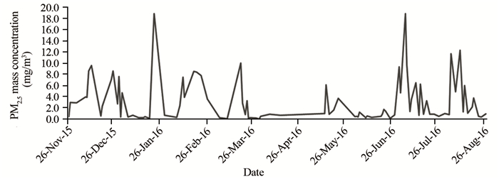 | 图 2 全身暴露系统染毒仓内PM2.5质量浓度 Figure 2 PM2.5 mass concentration in systemic exposure system |