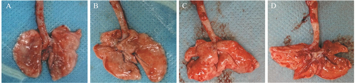 | A, B: PM2.5 group; C, D: control group 图 4 Wistar大鼠肺组织大体观察 Figure 4 General observation of lung tissues of Wistar rats |