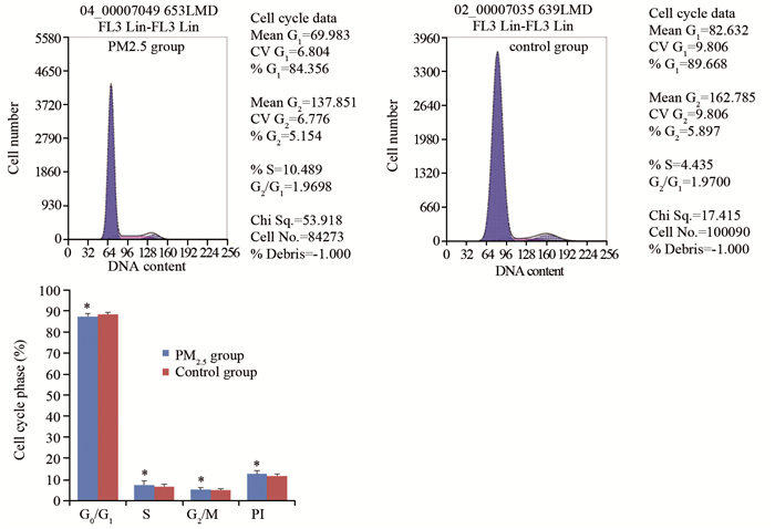 | *: P > 0.05, compared with control group 图 8 流式细胞术检测Wistar大鼠肺组织细胞周期 Figure 8 Cell cycle of Wistar rats lung tissues detected by flow cytometry |