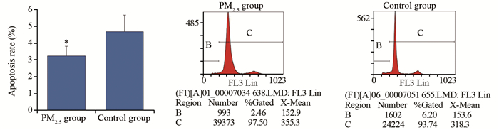| *: P < 0.05, compared with control group 图 9 流式细胞术检测Wistar大鼠肺组织细胞凋亡 Figure 9 Cell apoptosis of Wistar rats lung tissue detected by flow cytometry |