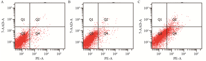 | A: mock group; B: siRNA-NC group; C: siRNA-USF2 group. 图 5 USF2 siRNA对胃癌BGC-823细胞凋亡率的影响 Figure 5 Effect of USF2 siRNA on apoptosis rate of gastric cancer BGC-823 cells |