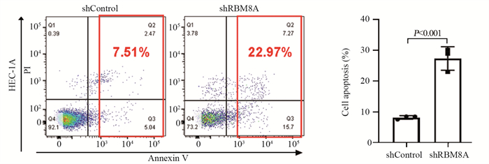 | 图 4 敲低RBM8A对HEC-1A细胞凋亡的影响 Figure 4 Effect of RBM8A knockdown on apoptosis of HEC-1A cells |