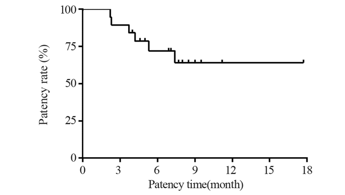 | 图 2 PDT治疗后胆道通畅时间Kaplan-Meier曲线图 Figure 2 Kaplan-Meier curve of biliary patency time after PDT treatment |