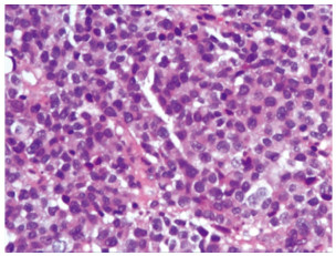 | 图 2 活检病理HE染色结果显示:(膀胱)高级别浸润性浆细胞样尿路上皮癌(×40) Figure 2 HE-stained images of biopsy pathology showed: (Bladder) high grade plasmacytoid urothelial carcinoma (×40) |