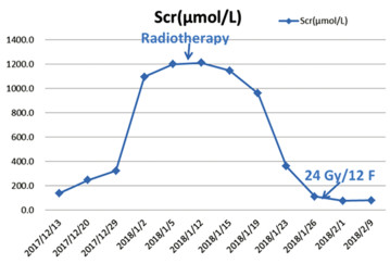 | 图 3 患者治疗过程中Scr的变化曲线 Figure 3 Change curve of Scr during treatment |