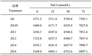 由表6可以看出,NaCl浓度越高,Z0处理叶片