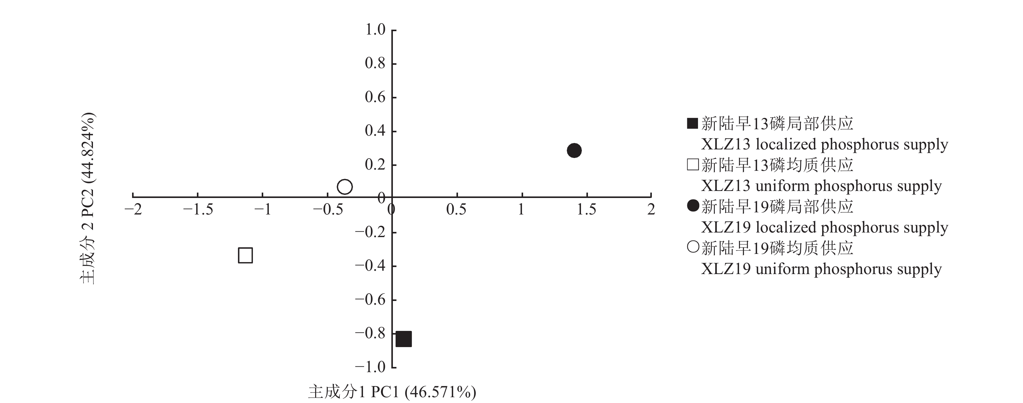| 图4 磷局部供应对棉花根形态影响的主成分分析 Fig. 4 Principal component analysis of root morphological parameters as affected by the localized phosphorus supply in cotton |