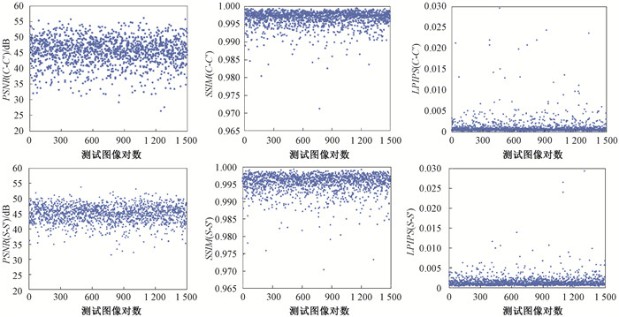 3) 学习感知图像块相似度(learned perceptual image patch similarity, LPIPS)[19]:是一种更为先进的图像衡量工具,它利用深度学习模型来提取图像的高级特征表示,并通过比较这些特征来衡量图像之间的感知相似性。不同于直接比较像素值,该方式更贴近人类的视觉感知。当两幅图像之间的LPIPS值越小时,表明它们越相似。