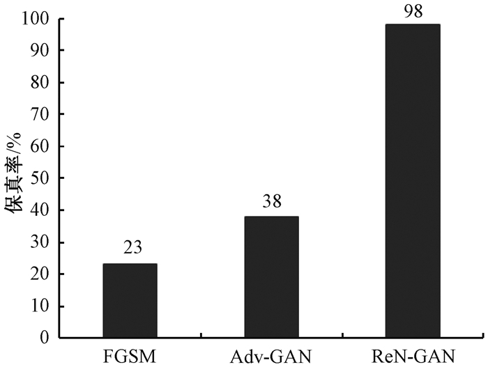 图 4 不同方法生成的对抗样本保真率 Fig. 4 Fidelity rates of adversarial samples generated by different methods |