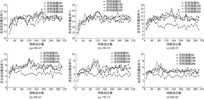 图 1 不同网格划分数的真实前沿覆盖率对比 Fig. 1 Comparison of true front coverage rate of different meshing numbers |